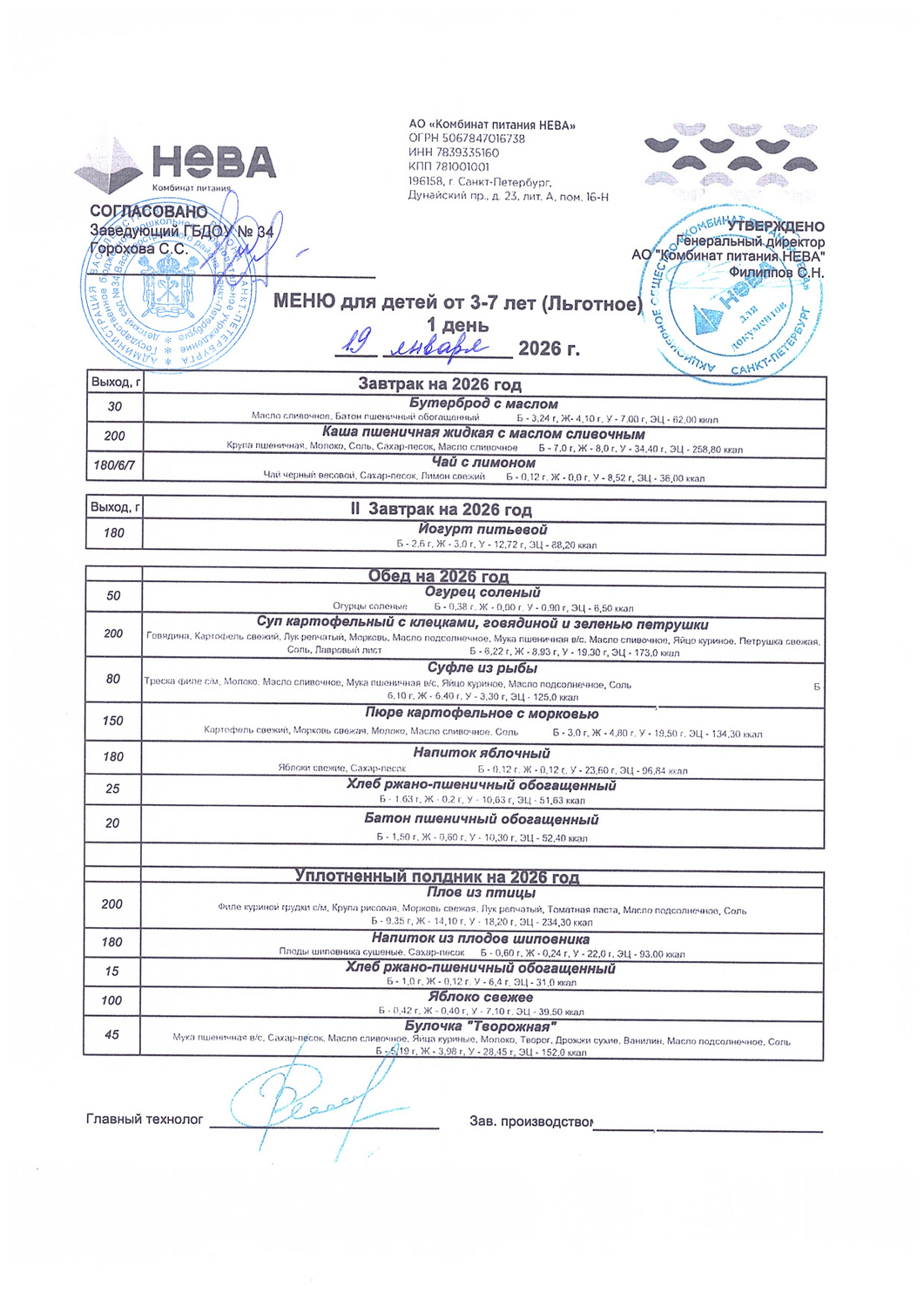 Организацию питания в учреждении осуществляет АО "Комбинат питания Нева"
